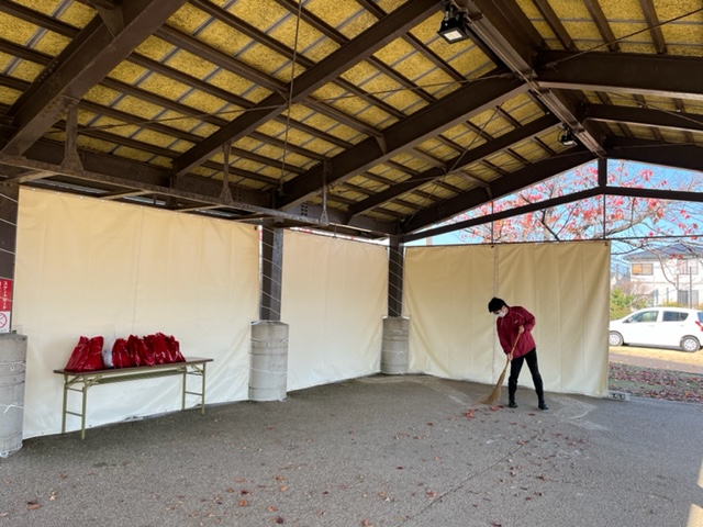 割出町公園あずまやに防風防雪シート(テント生地)設置